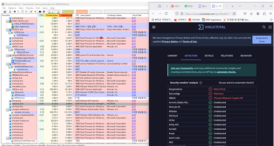 프로세스 쪽은 프로세스 모니터 등으로 눈으로 안보이는 프로세스들을 확인